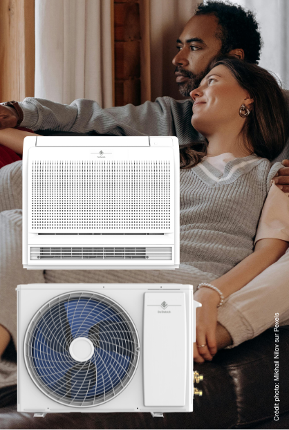 La gamme CLIM'UP Console offre un confort toute l'année grâce à sa fonction réversible, permettant de chauffer en hiver et de climatiser en été. Avec un système de diffusion d'air à vitesse réduite pour minimiser les courants d'air, elle permet une répartition efficace du flux d'air à la fois basse, simulant la chaleur d'un chauffage au sol, et haute, adaptée à la demande. De plus, la télécommande incluse agissant comme un capteur garantit une température uniformément ressentie dans tout votre logement.